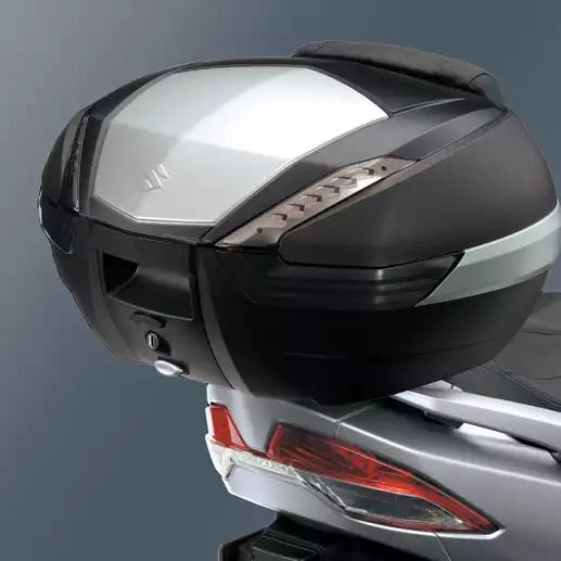 Der Roller ist mit einem Top-Case ausgerüstet.